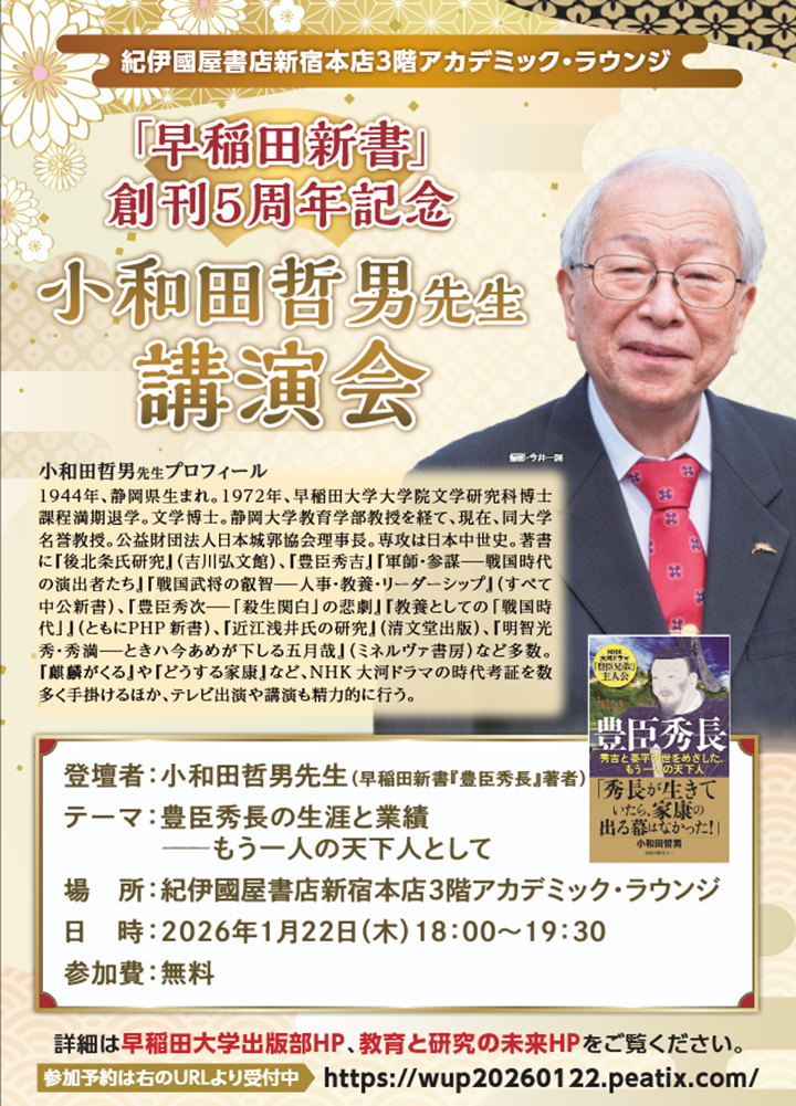 【新宿本店3階アカデミック・ラウンジ】「早稲田新書」創刊5周年記念 小和田哲男先生 講演会 「豊臣秀長の生涯と業績 ―― もう一人の天下人として」